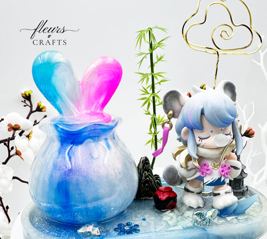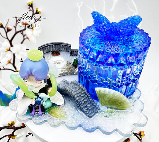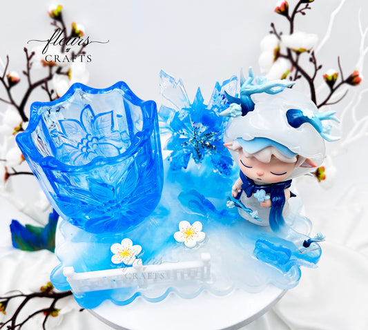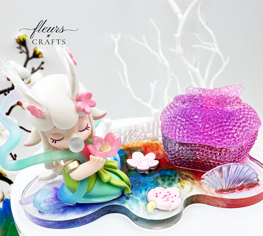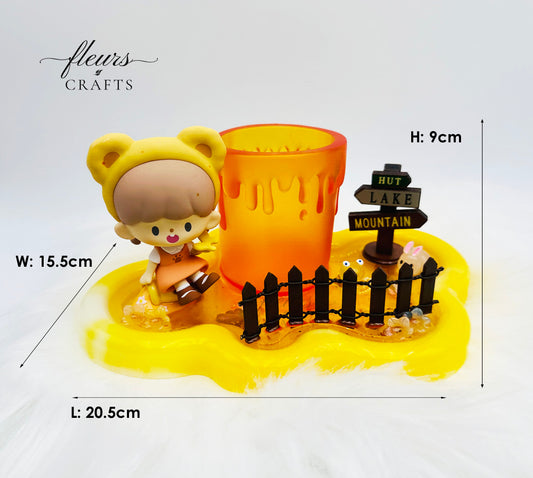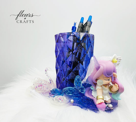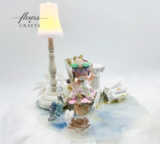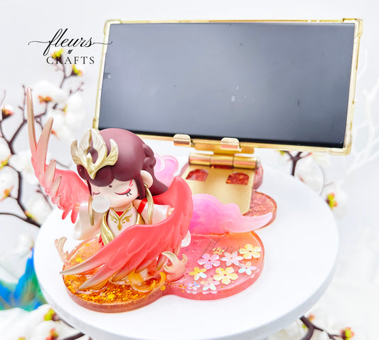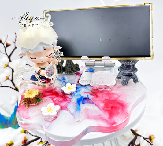 Resin and/or cream gel desk display with functions such as handphone holder, photo holder, business card holder, stationery holder, night light, player, jewelry box  etc. Note that we only have 1 stock for each design.